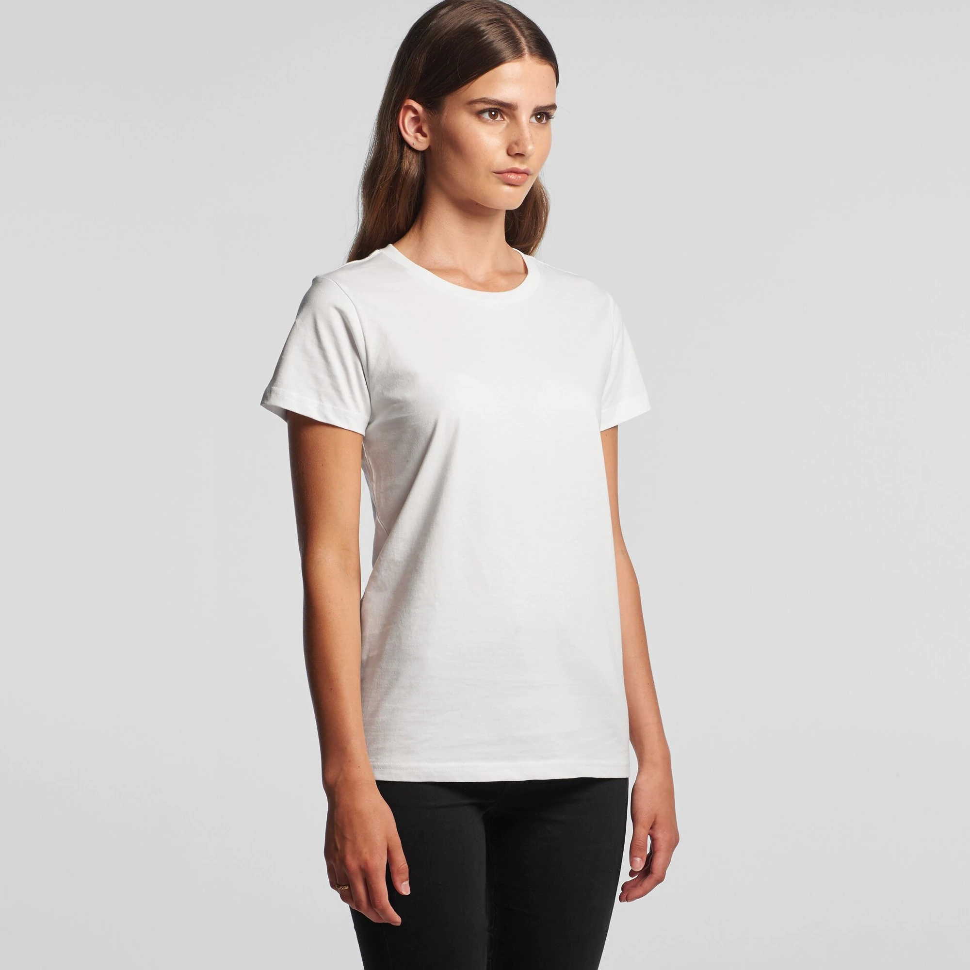 The female version of the AS Colour Staple Tee is the AS Colour Women's Maple Tee, which is also available in the Organic Maple Tee version.